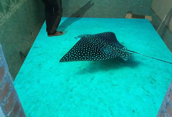 12. Desain lantai 3D bertema laut bikin dua lumba-lumba ini jadi terlihat seperti nyata.