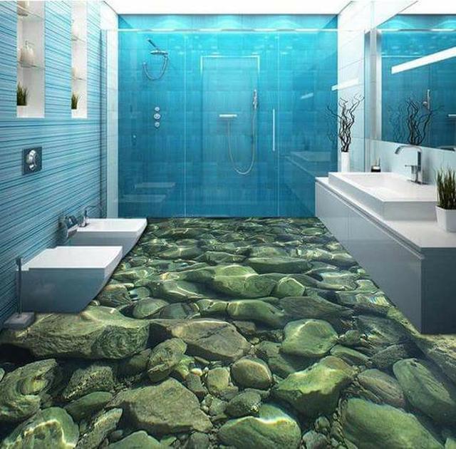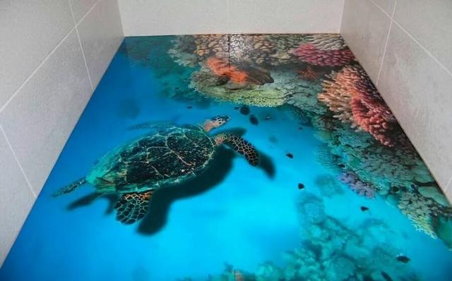 2. Mengaplikasikan lantai rumah 3D dengan motif ikan pari ini juga jadi pilihan oke buat kamar mandi mu.