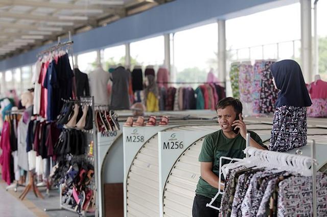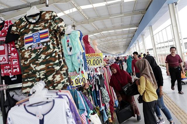 Pedagang di lorong Jembatan Penyeberangan Multiguna (JPM) Tanah Abang tengah melayani calon pembeli. (Salman Toyibi/Jawa Pos)