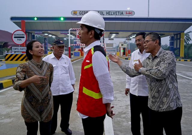 Keterangan foto utama: Joko Widodo saat peresmian jalan tol Medan-Kualanamu-Tebing Tinggi di Sumatera Utara, Oktober 2017.