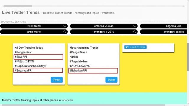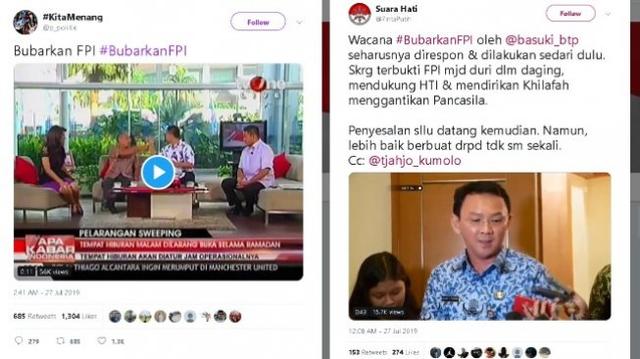 Balapan #SaveFPI vs #BubarkanFPI Jadi Trending Topic di Twitter